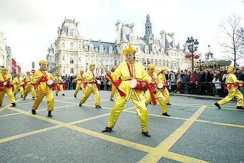 An estimated 200,000 people thronged Paris' most famous avenue to gawk at the spectacle of giant dragons, some 50 floats, acrobats, martial arts experts, drummers or cymbal players.