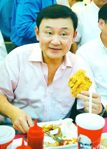 "This is good. You must lick every one of your fingers when you eat chicken ... I'm eating KFC because I know they cook chicken meat well. I used to work for KFC when I was studying in the States," said Thaksin, who studied criminology in Kentucky.