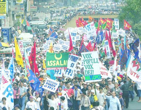 Poe's wife called for calm at a peaceful rally by about 3,000 people at a Manila park and his campaign team has been careful to avoid threatening riots.