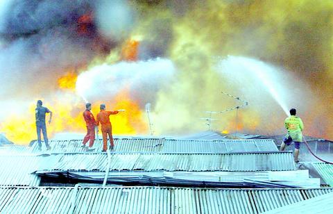 Over 100 firetrucks had converged on Tungmahamek, and several ambulances were standing by on the slum's periphery, but the vehicles appeared unable to navigate the narrow alleyways, a photographer witnessed.