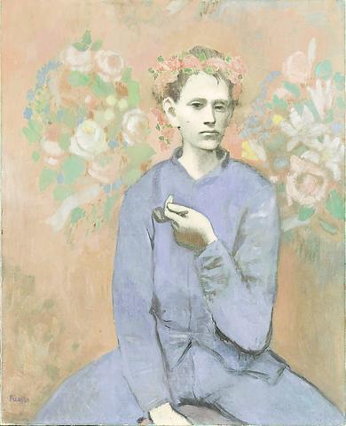 A 24-year-old Picasso painted Boy with a Pipe soon after settling in Montmartre, France. It depicts a young Parisian boy holding a pipe in his left hand and wearing a garland of flowers. John Hay and Betsey Whitney bought the painting in 1950 for US$30,000.