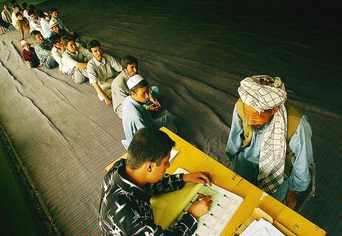 Sitting in a tiny chamber in the shadow of grey Hindu Kush mountains, Yasamin, a female electoral worker, struggles to keep up with the number of voters coming to register for Afghanistan's first presidential elections.