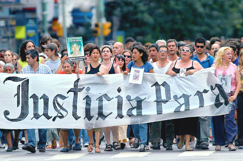 At the site of the club in a working-class Buenos Aires neighborhood, Argentines left candles, flowers and a small group held hands and bowed their heads in prayer to remember the victims.