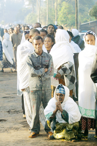 Wrapped in white prayer shawls as priests sang hymns over loudspeakers, Ethiopian voters yesterday were choosing between the ruling coalition that ended a brutal dictatorship in 1991 and new opposition parties who promise greater liberalization.