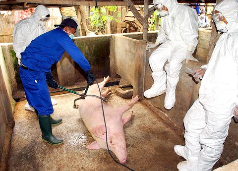 Meanwhile, Indonesia became the first known country yesterday to destroy pigs in its effort to contain the rapid spread of bird flu, which has killed at least 57 people across Asia and devastated poultry stocks.
