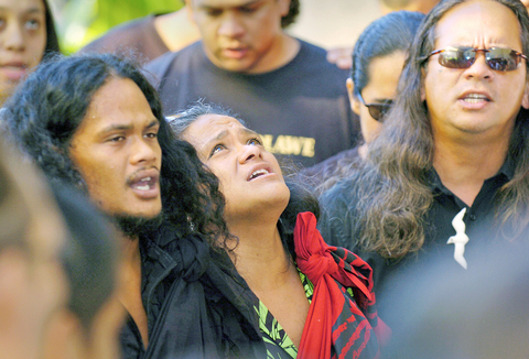 A crowd then gathered just outside the courtroom and began wailing plaintive Hawaiian chants.
