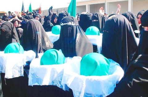 A sea of black-clad pilgrims flailing themselves and carrying traditional black and green flags filled the city, mourning the dead in a 7th-century battle that sealed a historic schism in Islam between Sunnis and Shiites.