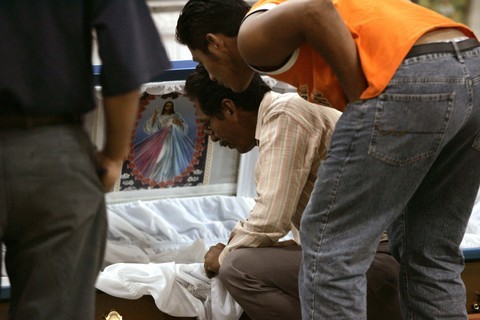 Sobbing family members began arriving in Maltrata yesterday at a makeshift gymnasium-turned-morgue to identify their loved ones. Earlier in the day, an overloaded bus careened off a highway and into a 200m ravine killing 57 people.