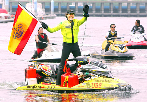 Alvaro de Marichalar, a descendant of the celebrated Jesuit, on Wednesday sped into Tokyo Bay after becoming the first person to jet-ski 5,320km from China to Japan.