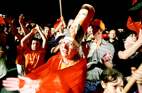 "Tonight we might celebrate for a while and then work is waiting for us," Gruevski said as party supporters took to the streets of the capital's downtown area.