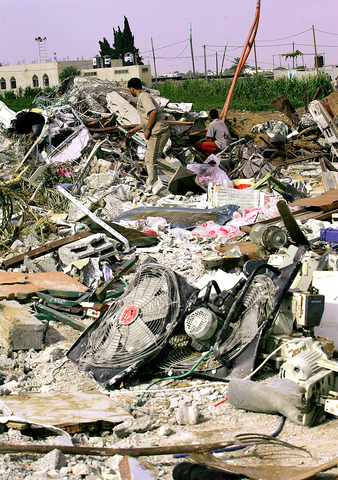 After two days of battles in the Mughazi camp, Israeli forces left behind considerable destruction, leveling farmland, tearing up water pipes and knocking down electrical wires. Some people in the camp of 22,000 were trapped in their houses by embankments the Israelis built as tank emplacements, residents said.