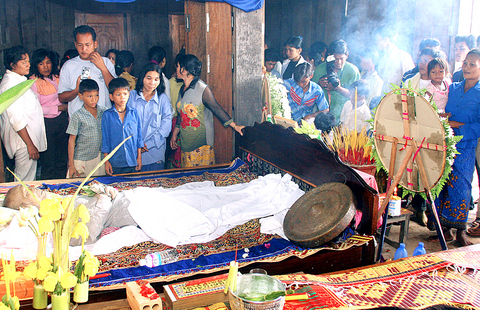 Yet yesterday, Ta Mok received the sort of memorial that he and his colleagues denied so many of their countrymen. Buddhist funeral music, blasted through a loudspeaker, wafted far into the distance. The monks chanted prayers to bless his soul as a steady stream of mourners came visiting, some in tears.