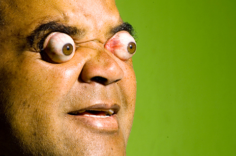 Claudio Paulo Pinto is looking for work. Pinto can pop his eyeballs at least 7mm out of their sockets, a national record for eye-popping according to RankBrasil, an organization modeled after the Guinness Book of World Records that lists Brazilian records. Pinto had a job scaring visitors in a commercial haunted house in Belo Horizonte but was recently laid off, and he is now seeking international recognition for his ability. "I was measured by an opthamologist on television in January. I could pop my eyes out 7mm," Pinto said on Saturday. "Since then, my capacities have improved over 50 percent." The title of "furthest eyeball popper" in the Guinness Book of World Records currently belongs to Kim Goodman of Chicago, who can pop her eyeballs 11mm out of her sockets.