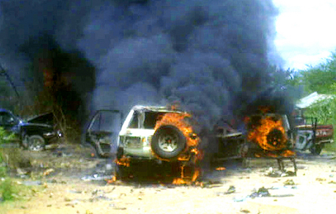 "I am sure the Islamic courts are behind it," one senior government source said on condition of anonymity, adding there had been intelligence information from Mogadishu four days earlier about two explosive-laden cars being driven to Baidoa.