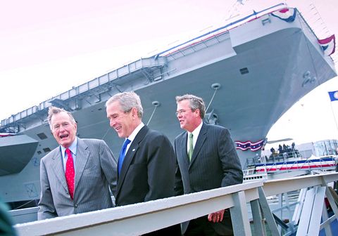Not the current President Bush, but the first, who was joined on Saturday at a shipyard in Newport News, Virginia, by dozens of political luminaries and his extended clan -- including the son he calls "the president" -- to christen a Navy aircraft carrier bearing his name.