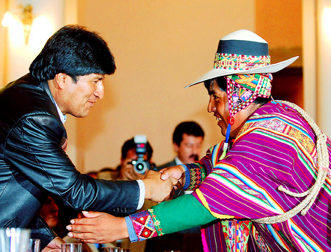 Hundreds of indigenous Bolivians danced and cheered outside the presidential palace early yesterday celebrating the move.