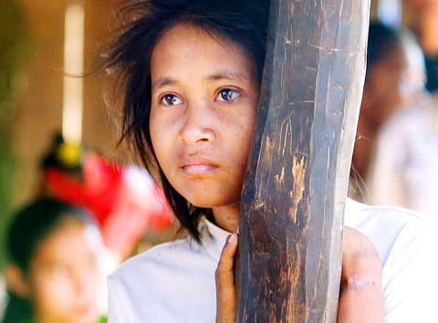 She sits for hours at a time, staring at the floor or at the throngs of villagers that have mobbed this small shack, her unsmiling face betraying nothing other than occasional fear flashing in her eyes.