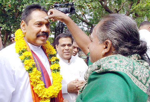 Parameswar had garlanded Rajapakse on his arrival on Saturday in Vakarai, a former rebel stronghold that was seized by security forces following weeks of fighting earlier last month.