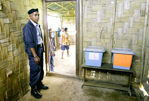 Gusmao yesterday handed ballot boxes to a polling booth in the capital Dili, where the cathedral was packed to overflowing with parishioners including refugees who live in nearby tents.