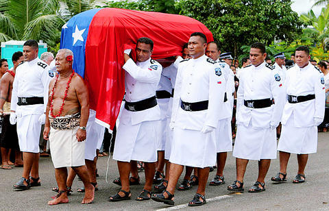 "While this means the passing of our dearly beloved father ... he is a hero who has put the sword in the sea and God calls him forward forever," Reverend Oka Feolo, chairman of the Samoan Council of Churches, told mourners.