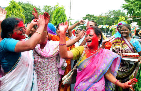 A stream of well-wishers thronged Patil's residence in New Delhi and people were dancing in the streets in her home town of Jalgaon.