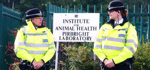 The laboratory, close to a farm where cases of the disease were reported, is shared by the government's Institute for Animal Health (IAH), and a private pharmaceutical company, Merial Animal Health.