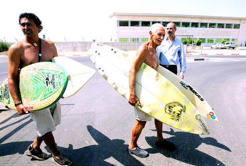 Tanned, grinning and shirtless, Paskowitz emerged at the Erez crossing between Israel and Gaza after handing over 15 boards to a few Palestinian surfers waiting on the other side. He said he was spurred into action after reading a newspaper article about two Gazans who couldn't enjoy the waves because they had only one board between them.