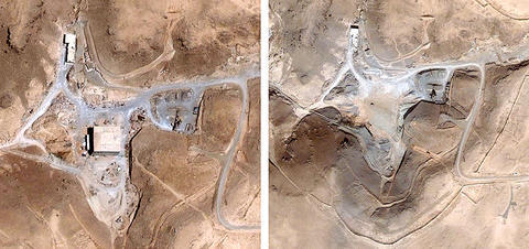 The new image of the desolate Syrian site was released on Friday by GeoEye, in Dulles, Virginia.