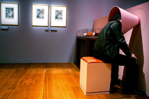 The curators kept the exhibit tasteful and scholarly, but they clearly had fun coming up with its layout. In the show's first stop -- a strangely empty room -- simple plaques hang on the walls. Like peepshow patrons, visitors can lift the plaques to peer into the main gallery through holes in the wall.