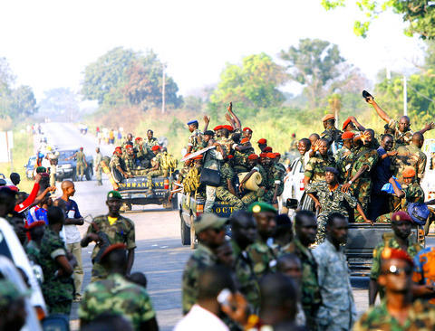 North of the buffer zone at Djebonoua, rebels also packed into vehicles and headed toward military barracks in their stronghold at Bouake, where they will eventually hand in their weapons to either be integrated into the army or demobilized.