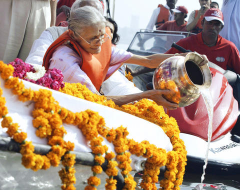 To honor the nonviolence leader, Gandhi's followers carried his ashes through the streets of Mumbai to the coast of the Arabian sea. Some 300 people, including school and college students and elderly followers, watched as Gandhi's family members took the ashes nearly 1.5km into the sea on a decorated motorboat.
