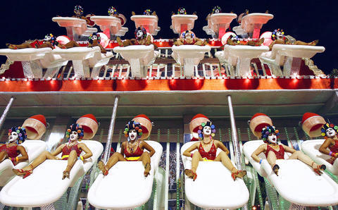 Others wore even less, including two in the opening entry by the Sao Clemente samba school. Its two carnival queens danced their way along the 700m parade runway in nothing more than a bottle-top-sized piece of shiny stick-on foil in a strategic spot.