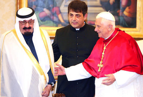 The message from the Saudi monarch, who met Pope Benedict XVI in November, comes at a time of tensions between followers of the three religions. Muslims have been angered by cartoons published in European papers seen as insulting the Prophet Mohammed -- and the pope's baptizing on Easter of a Muslim commentator who converted to Catholicism has also raised eyebrows.