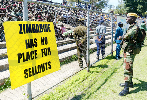 “Beware. Be vigilant in the face of the vicious machinations of Britain and its other allies,” Mugabe said. “Yesterday they ruled by brute force. Today they have perfected their tactics to be more subtle. They are literally buying people to turn against the government. We are being bought like sheep because they have money and because we are suffering.”