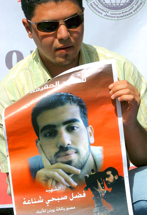 Palestinian journalists have staged protests following Shana’s death and on Sunday several dozen journalists marched in the West Bank city of Ramallah. The marchers, including Palestinian Information Minister Riad Malki, were led by a group carrying a stretcher with a camera and a tripod. They held a banner reading: “The occupiers are responsible for the blood of our colleague.”