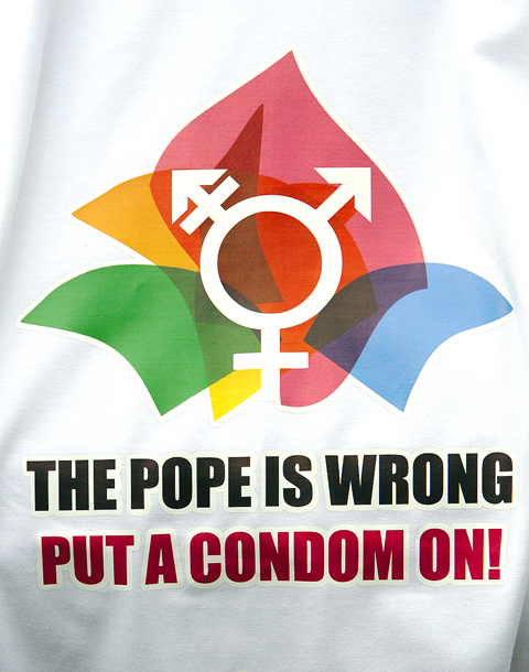 “They are not from Milan,” acknowledged Rachel Evans, spokeswoman of the NoToPope group, as T-shirts featuring slogans such as “The Pope is wrong, put a condom on” were displayed outside the New South Wales state parliament.
