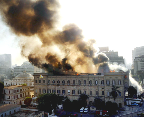 As a huge black cloud rose above the building, which is located in central Cairo.