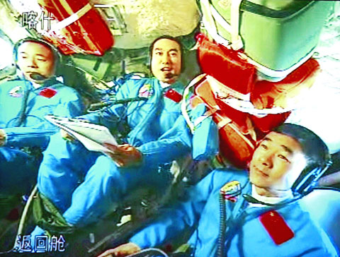Led by mission commander Zhai Zhigang (翟志剛), the manned space flight was launched on Thursday and was expected to return yesterday afternoon.