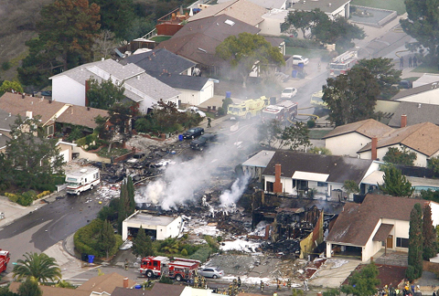 The neighborhood in the University City section of San Diego smelled of jet fuel and smoke. Ambulances, fire trucks and police cars choked the streets. A Marine Corps bomb disposal truck was there, although police assured residents there was no ordnance aboard the jet.