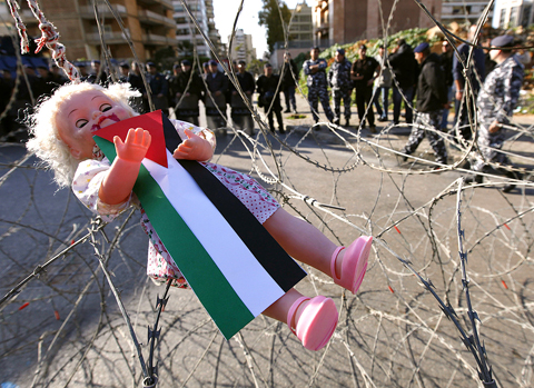 In Madrid, hundreds of people demonstrated outside the Israeli embassy, brandishing placards reading “Israel terrorist,” “Stop state terrorism” and “No to the Palestinian holocaust.”