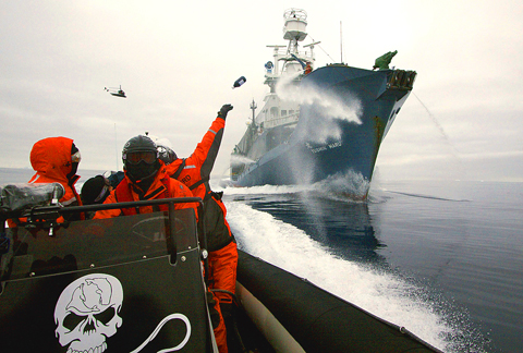 “The factory ship the Nisshin Maru [No. 1] and the two harpoon vessels in the fleet are equipped with long range acoustical devices,” it said. “This is a military grade weapon system that sends out mid to high frequency sound waves designed to disorient and possibly incapacitate personnel. It is basically an anti-personnel weapons system.”