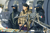 Mexican authorities arrested a woman guarding an arsenal that included the first anti-aircraft machine gun seized in Mexico, police said on Tuesday, as the army announced the capture of an alleged top drug cartel lieutenant.