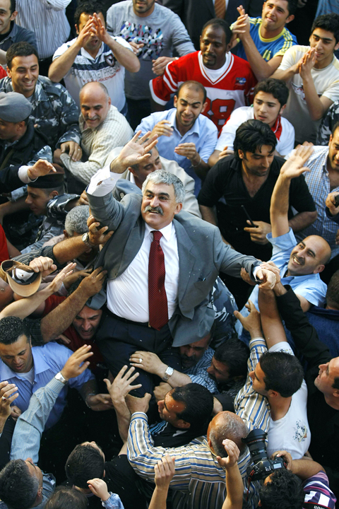 Former General Security head Major General Jamil al-Sayyed, the first of the generals to appear in public after their release, spoke to hundreds of cheering supporters outside his house.