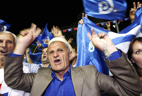 Berisha’s supporters waved the party’s blue flags from speeding cars around Tirana on late on Sunday to celebrate victory after the results of exit polls were announced, but Berisha did not claim victory.
