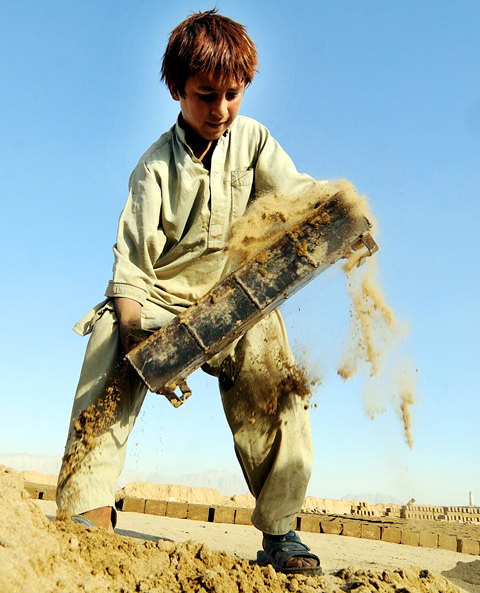Adults on the site earn up to 320 Afghanis for every 1,000 bricks they make.