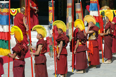 On Sunday, the main monastery was filled with fresh orange, white and red flowers as young monks bustled around making last-minute preparations.