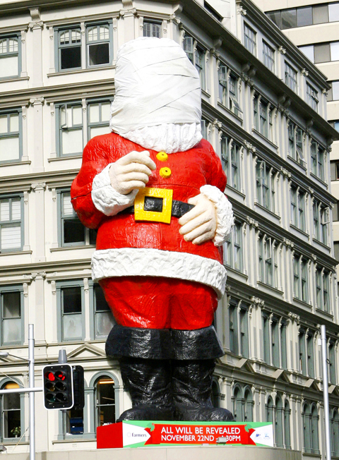 A Santa with a droopy eye has received a US$100,000 face-lift in the run-up to Christmas so that his aging face does not scare children. The 20m tall fiberglass Santa has been among the festive decorations in Auckland since 1960, but in recent years began to struggle with one of his eyes that was made to wink and a mechanical finger that moved in a welcoming gesture. “There was a concern the guy did look a little creepy. It was the finger and the Sad Sack, winking, droopy eye,” Heart of the City chief executive Alex Swney told local media. The Santa, which stands on a street corner in the city center, has undergone extensive facial work over the past four months at a cost of over US$100,000. His face remains bandaged ahead of a public unveiling tomorrow, but his mechanical finger has been replaced with a static digit.