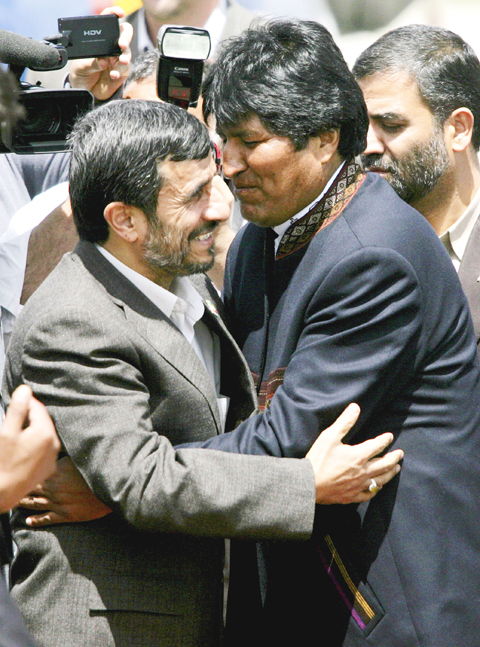 The Iranian president’s strained relations with Washington are shared by Bolivia’s first indigenous president, who expelled the US ambassador last year. Ahmadinejad called Morales “a friend and brother” on Tuesday and praised the two countries’ cooperation “despite the opposition of imperialism,” a reference to the US.