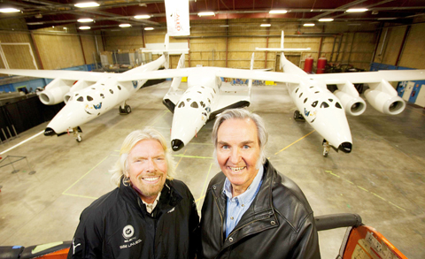 SpaceShipTwo, which is built from carbon composite materials like the mothership, is to be powered by a hybrid rocket motor that is still under development.