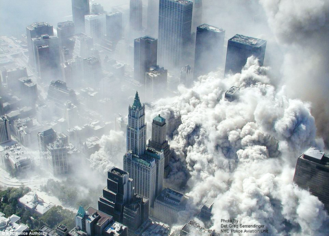 A trove of aerial photographs of the collapsing World Trade Center was widely released this week, offering a rare and chilling view from the heavens of the burning twin towers and the apocalyptic shroud of smoke and dust that settled over the city.